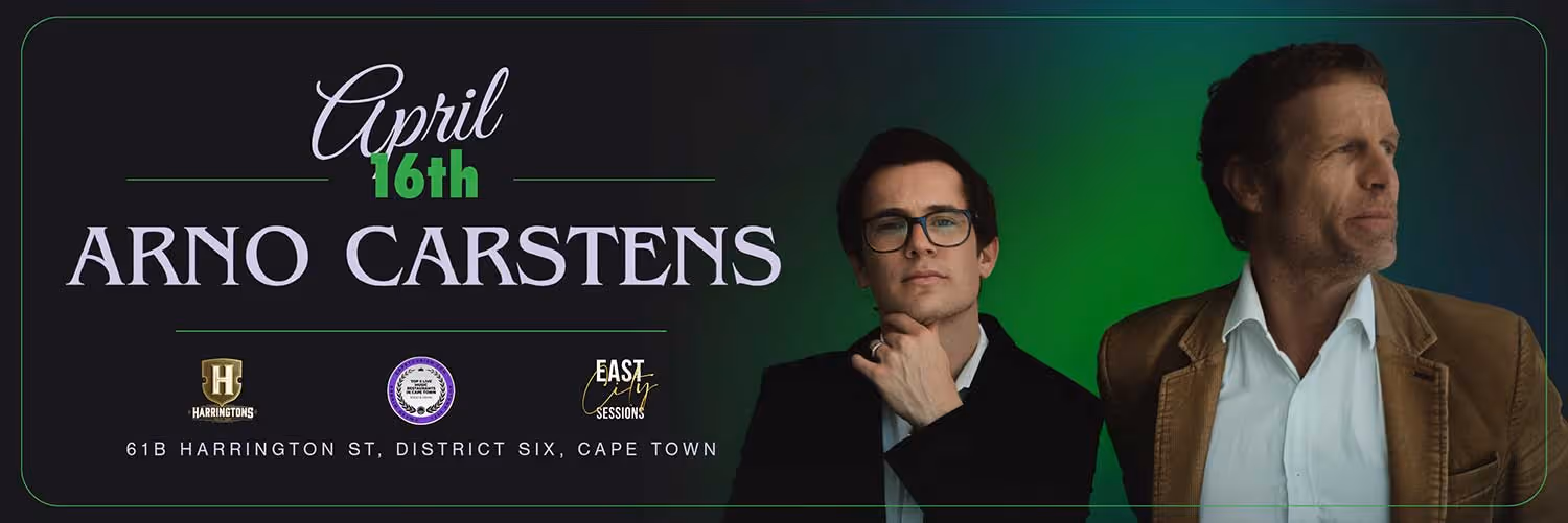 Experience an unforgettable evening with South African rock royalty as Arno Carstens takes over the chic Harringtons Cocktail Lounge. This intimate duo performance strips back the noise to bring you the raw, soulful essence of Arno’s most beloved work. From the anthems of the Springbok Nude Girls to his chart-topping solo hits and hand-picked covers, it’s a rare chance to see a local legend in a setting as sophisticated as the music itself. It’s the ultimate combination of fine dining and a front-row seat to one of the country’s most iconic voices.