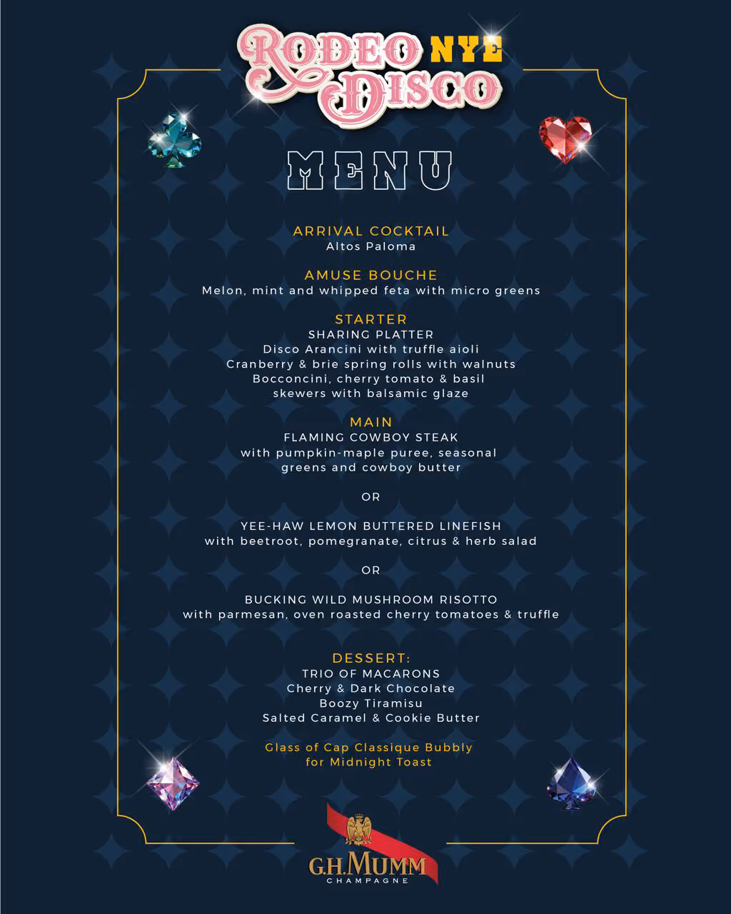 Step into a glitter-soaked saloon where country meets the club floor. Think mirror balls, metallic boots, neon lights, and sequin fringe, as we dance our way into 2026. Expect two levels of music, bold cocktails, and a midnight moment that’ll leave you breathless.
