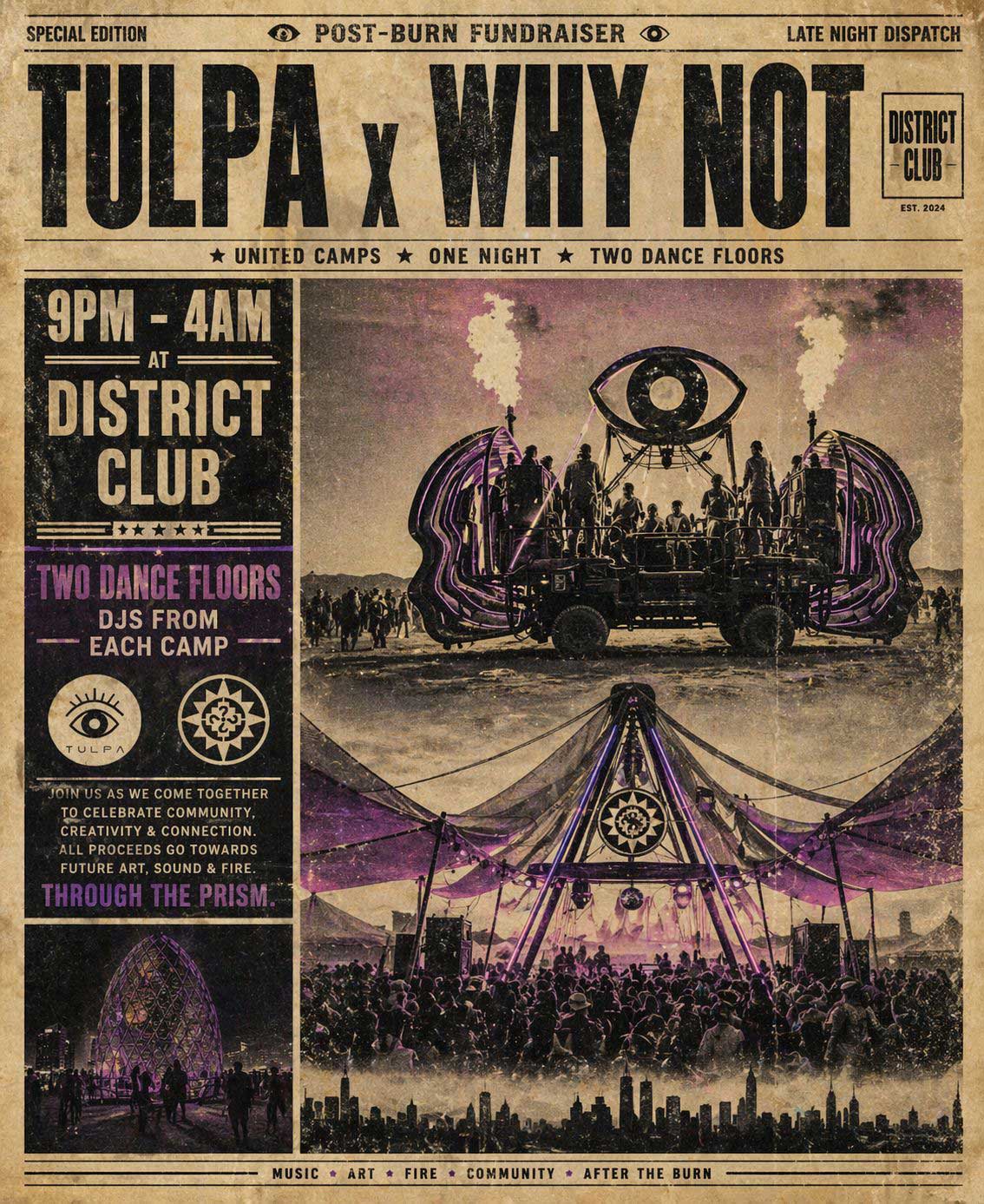 Tulpa x WhyNot invite you to the only decompression worth showing up for - bringing together two OG camps, two dance floors, and a familiar kind of magic.