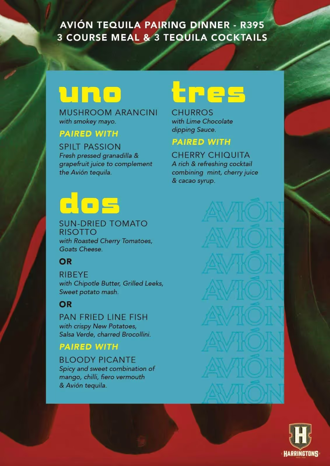 Every Friday in March & April, we’re excited to be offering a three course meal paired with @tequilaavion cocktails for R395 per person. Expect some feisty flavours and delicious crafted cocktails, and an epic night out!